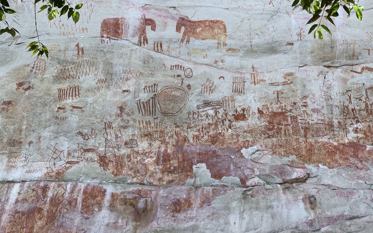 Today you’ll discover the Guayabero wall of cave art,reached by boat through the Angosturas II rapids, formed in the canyon of the Río Guayabero. New rock frescoes await you on this incredibly well-preserved site. Thanks to the isolation of the site, it is also possible to observe wild animals: monkeys, hummingbirds, river turtles, etc. To round off the day, you’ll visit the most beautiful viewpoint in the entire region. Finally, you can take a dip under the small waterfall in the Grotte de l’Amour (Cave of Love).Walk: 2 hrs, medium difficultyTrips: 1.5 hrs by 4×4 + 30 min by boatOvernight at Hotel Quinto Nivel