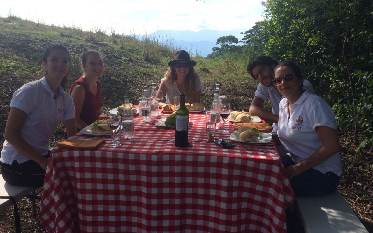 We then head off to a typical coffee-region hacienda in Pereira for a horseback ride. On the backs of the horses, we admire the landscapes of the Risaralda Valley. Halfway along the route, we stop for a gourmet picnic prepared with great care. The meal is served on a table covered with a traditional red-and-white-checkered tablecloth – kitschy, but we like it! Accompanied by a glass of wine, we continue to enjoy this privileged moment. We get back on our horses and finish our 2-hour ride.