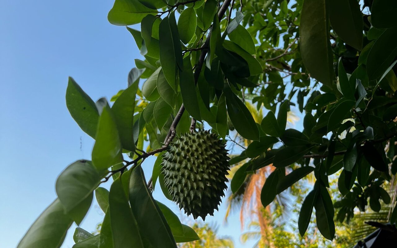 Or guanabana, which has a unique taste that can be hard to describe, but it’s a bit like combining the freshness of strawberries with the sweetness of bananas, all with a light touch of acidity. It’s really delicious! This fruit is often used in juices, desserts and smoothies for its refreshing, exotic flavor.