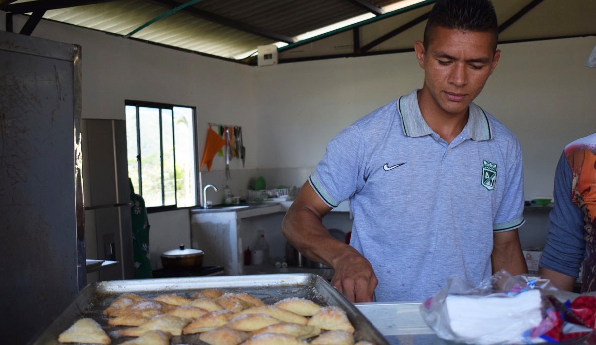 « It was great to move from a time of conflict to a time of peace, where you get to meet and exchange with the civilian population. Now I want to progress and, as I love baking, I work here and hope to become a better person » says Jaime. The premises are small, but the bakery is a success: 300 products are sold on average every day, and as it’s the first bakery to open in the area, word has reached the surrounding villages, which are now placing their orders. « After breakfast, we start to smell that bread smell and we go to the bakery to eat what’s fresh out of the oven. We never imagined that this would happen, » says another former FARC member who, like Jaime, is in rehabilitation. In Anorí, peace is a reality: soldiers, policemen, FARC members, community members, government representatives, all greet each other, make jokes and even share bread or churros from the new bakery.